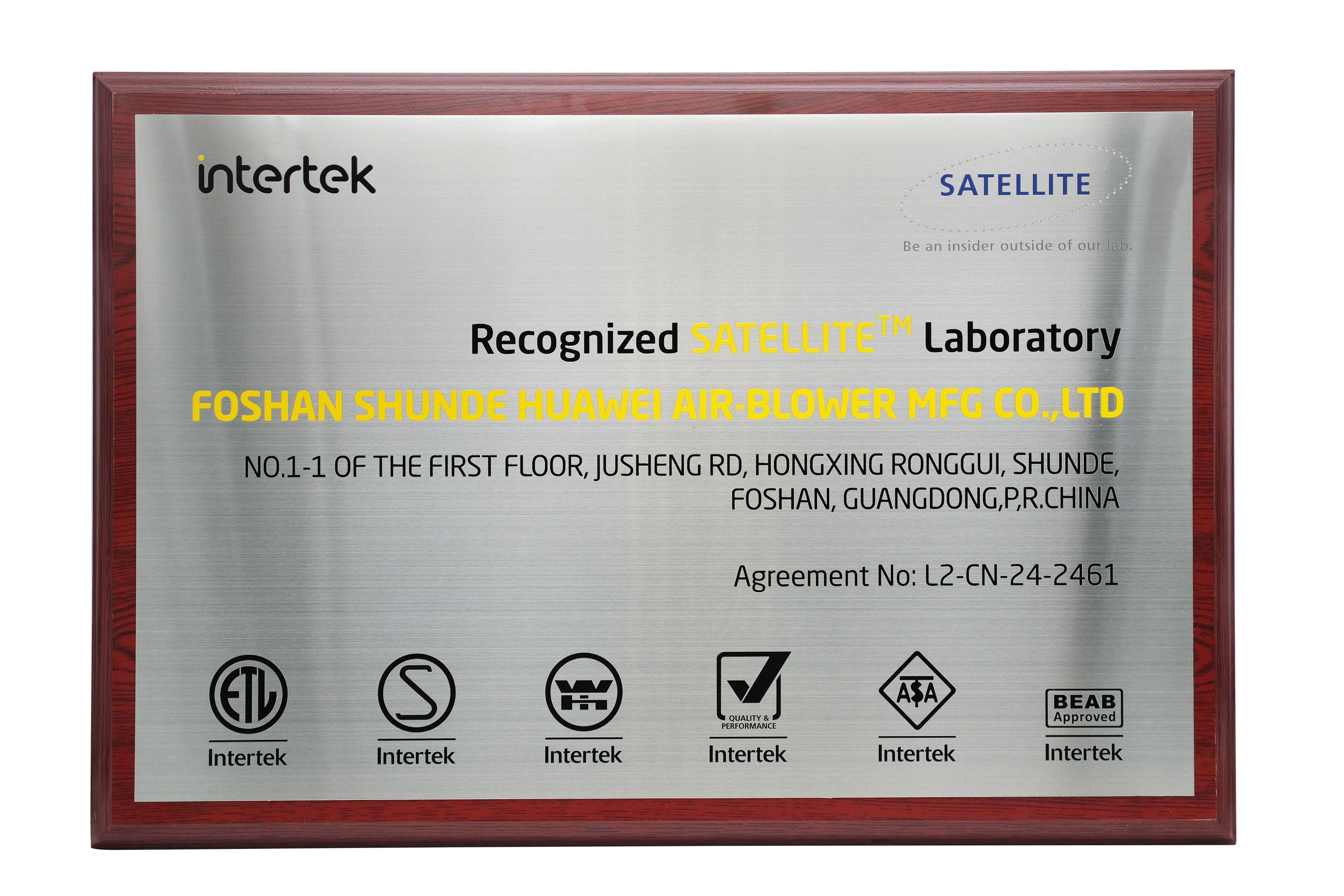 近日,华威荣幸地获得了Intertek(天祥集团)颁发的“卫星计划”实验室资质,成为充气风机行业中率先获得该资质的企业。